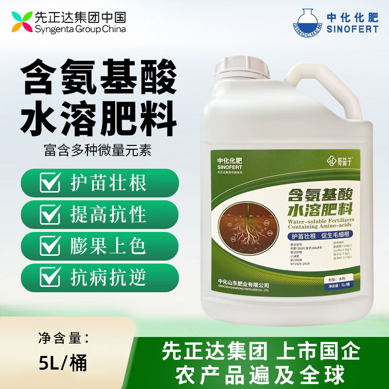 包邮 中化化肥含氨基酸水溶肥料冲施肥蔬菜花卉蔬菜肥料叶面肥 5L